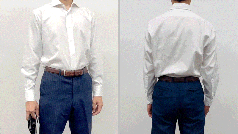 丈のあるシャツなら、上から隠すことも可能。超薄型なので、ウエストポーチのようにシャツが膨らむこともなく、野暮ったい感じもありません。