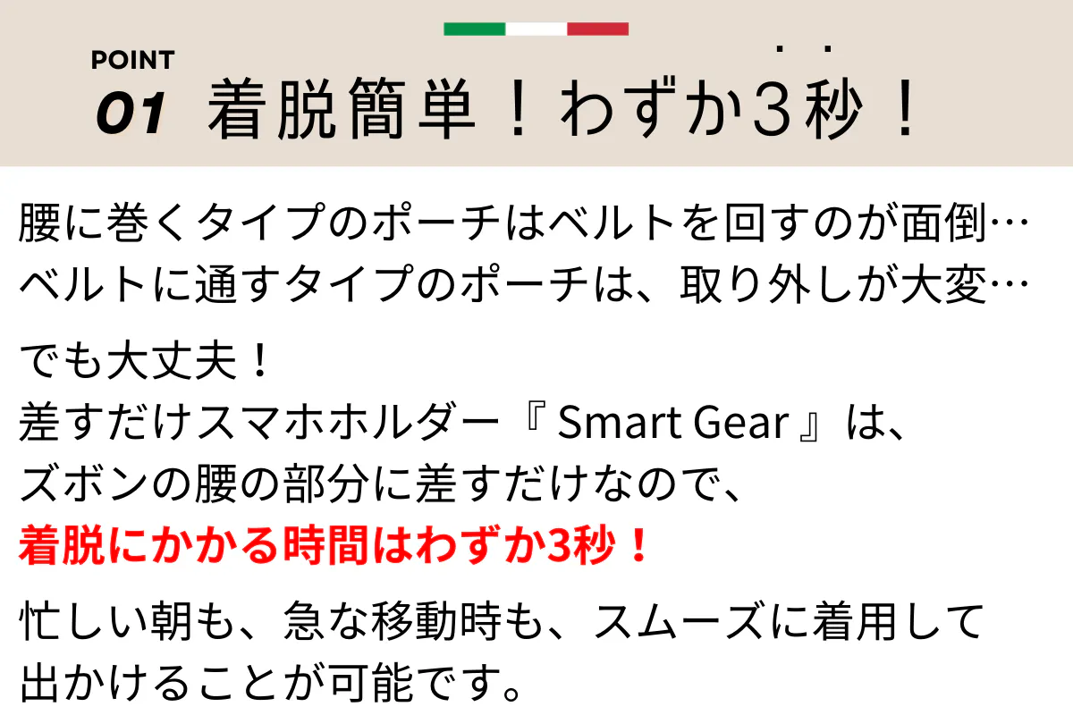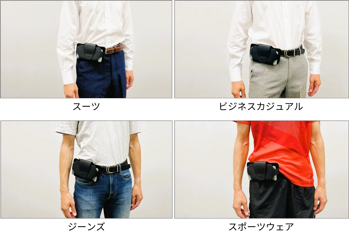 ウエスト部分に差すだけで、スマホを「手ぶら」で「スマート」に持ち運べる、ビジネスマン専用のスマホホルダーが誕生!