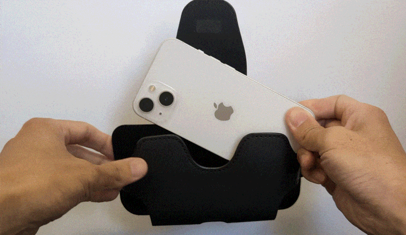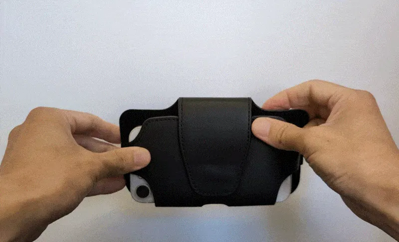 そして、完成したサンプルを複数のスタッフが実際に腰にセットした状態で、仕事をしたり、改札を通ったり、自販機で缶コーヒーを購入してみたり、実際にビジネスマンのライフスタイルに沿って使用感を試してみたところ、着脱が簡単でスマホの持ち運びが非常に容易である一方で、いざスマホを取り出そうとした際に、スムーズに取り出せずに手間取ってしまう…ということが分かりました。