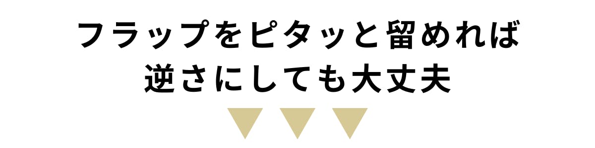 フラップ(蓋)部分は、ピタッと留まるマグネット式。マジックテープのように「ベリベリッ…」という音もせず開閉もスマート。