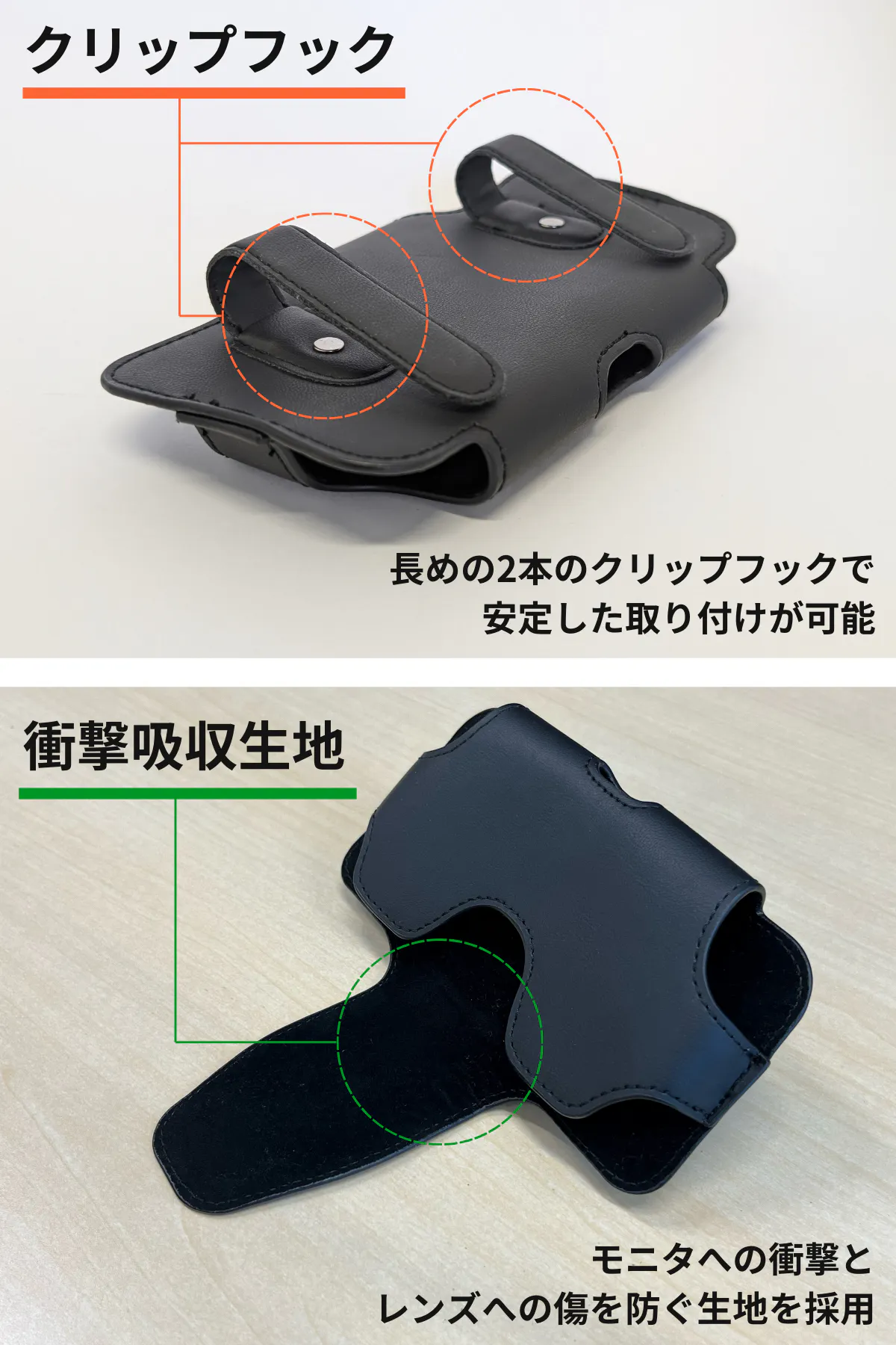 また、ホルダーの内部には、スマホのモニタへの衝撃と、カメラのレンズへの傷を防ぐ衝撃吸収生地を採用。あなたの大切なスマホを安心安全に持ち歩くことができます。