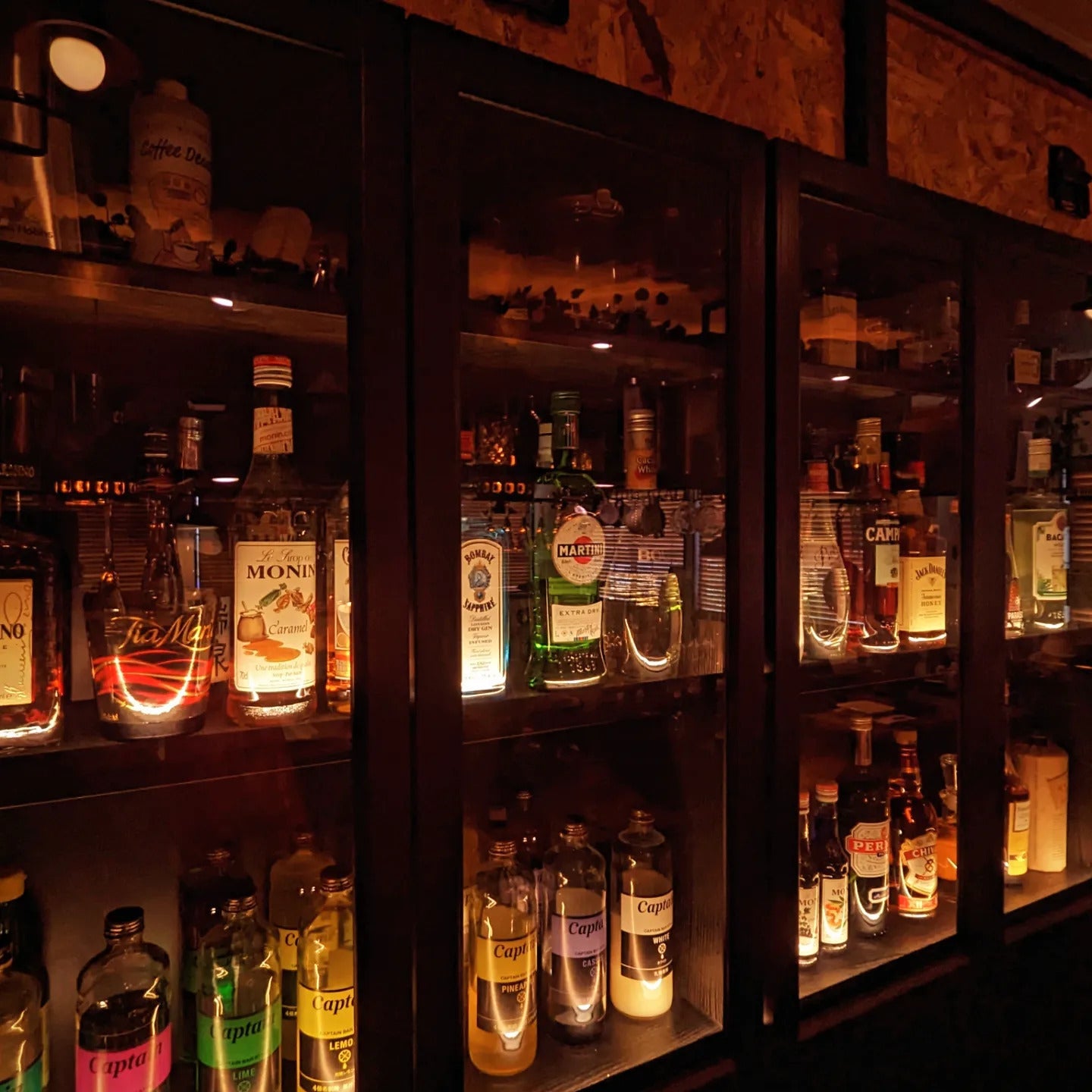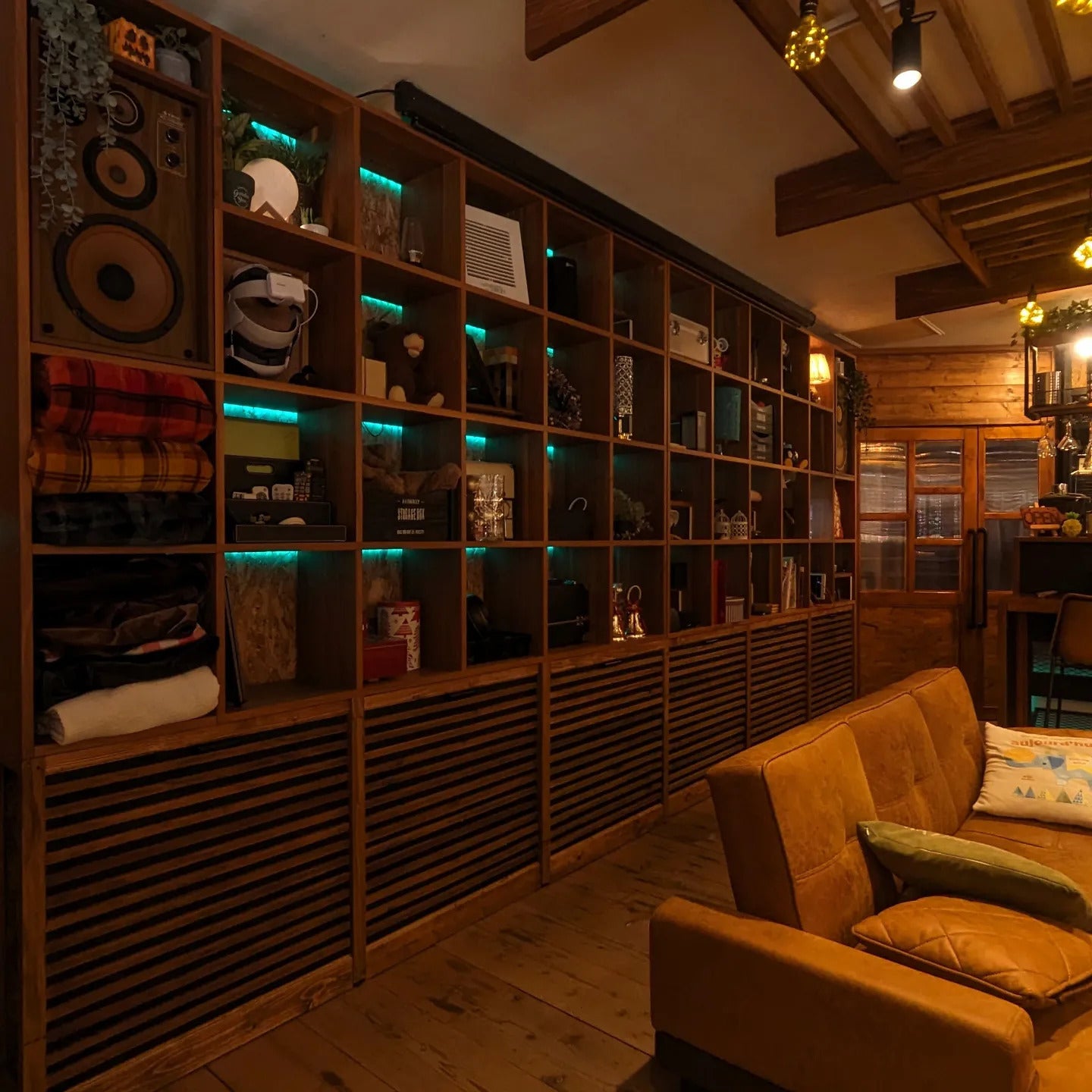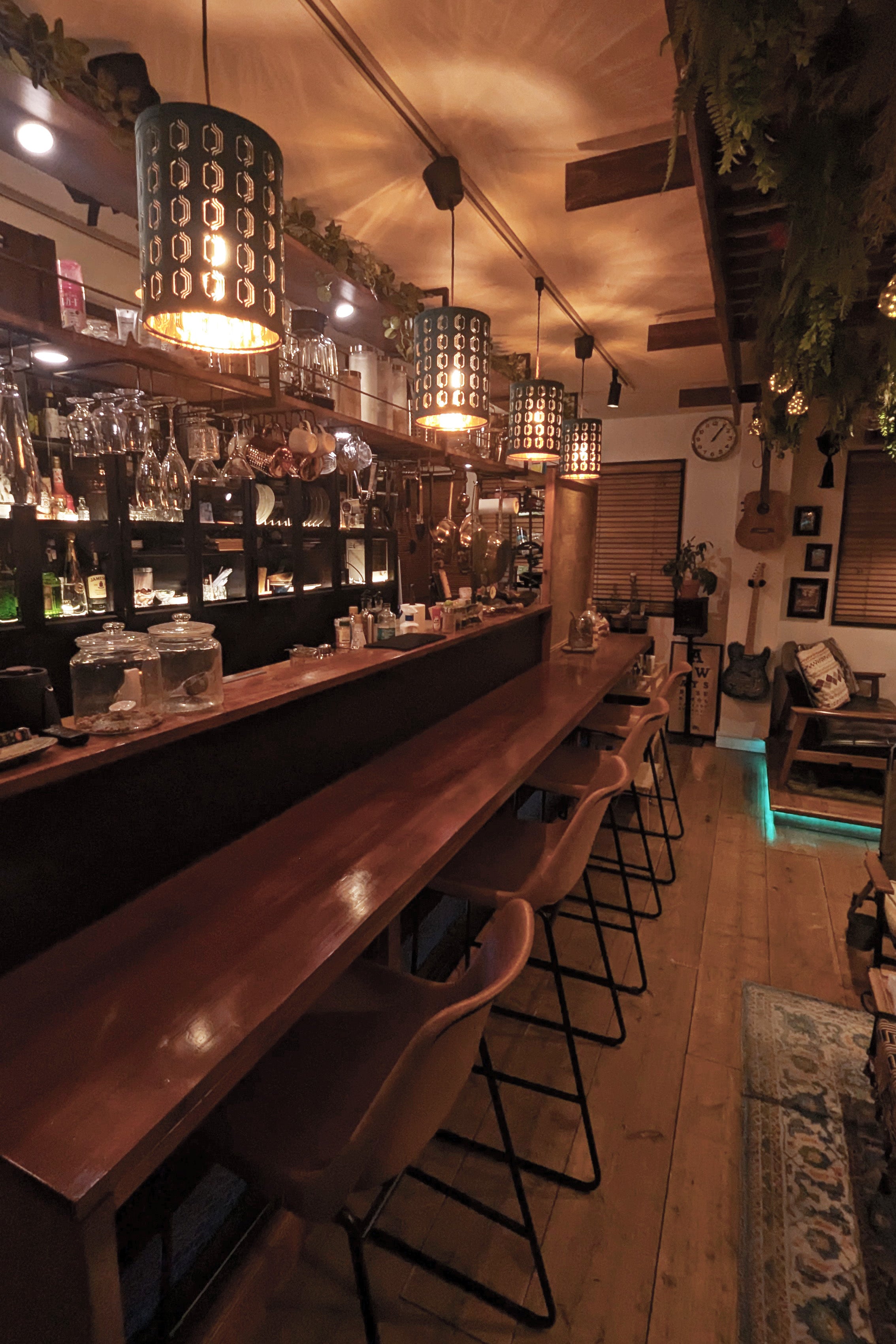店内は、木材と緑を基調とした落ち着いた空間。DIYで一から手を入れ、既製品では出せない“温度”のある場をつくります。音楽、映像、ゲーム、そしてAIや未来技術といった知的好奇心も取り入れ、「大人が童心に戻れる夜」を演出します。
