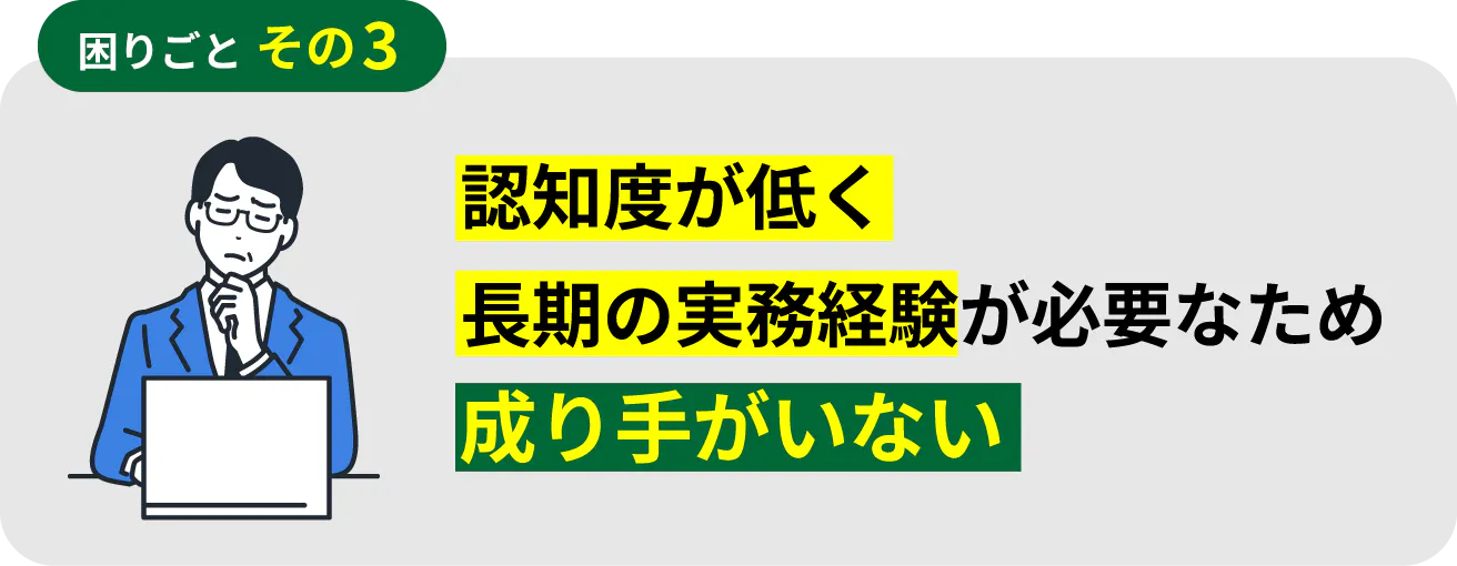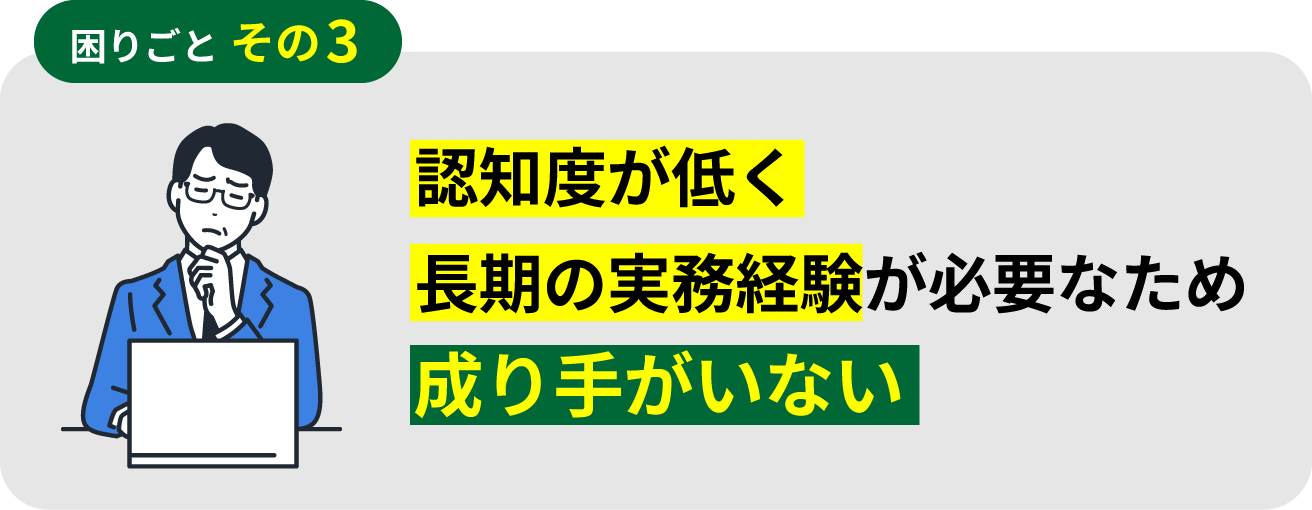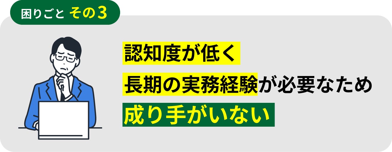 この職種・資格自体の認知度が低いという現状と、資格取得には福祉関係の実務経験が3〜10年が必要なため、成り手が少なく、常に人材不足の状態です。