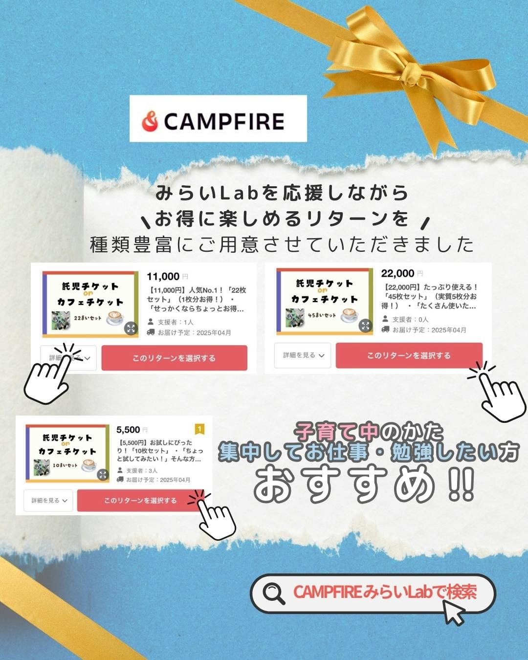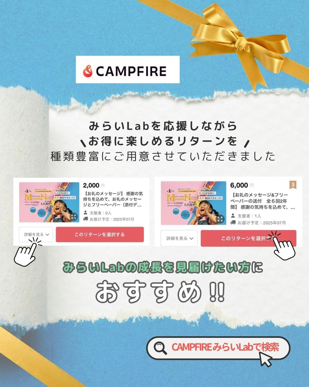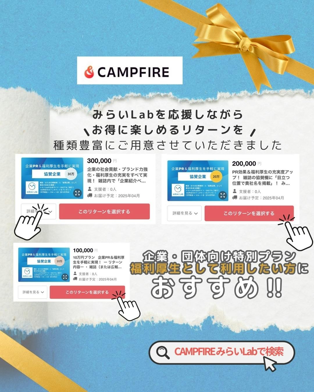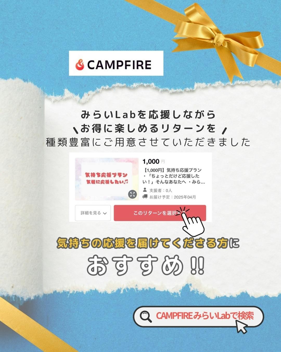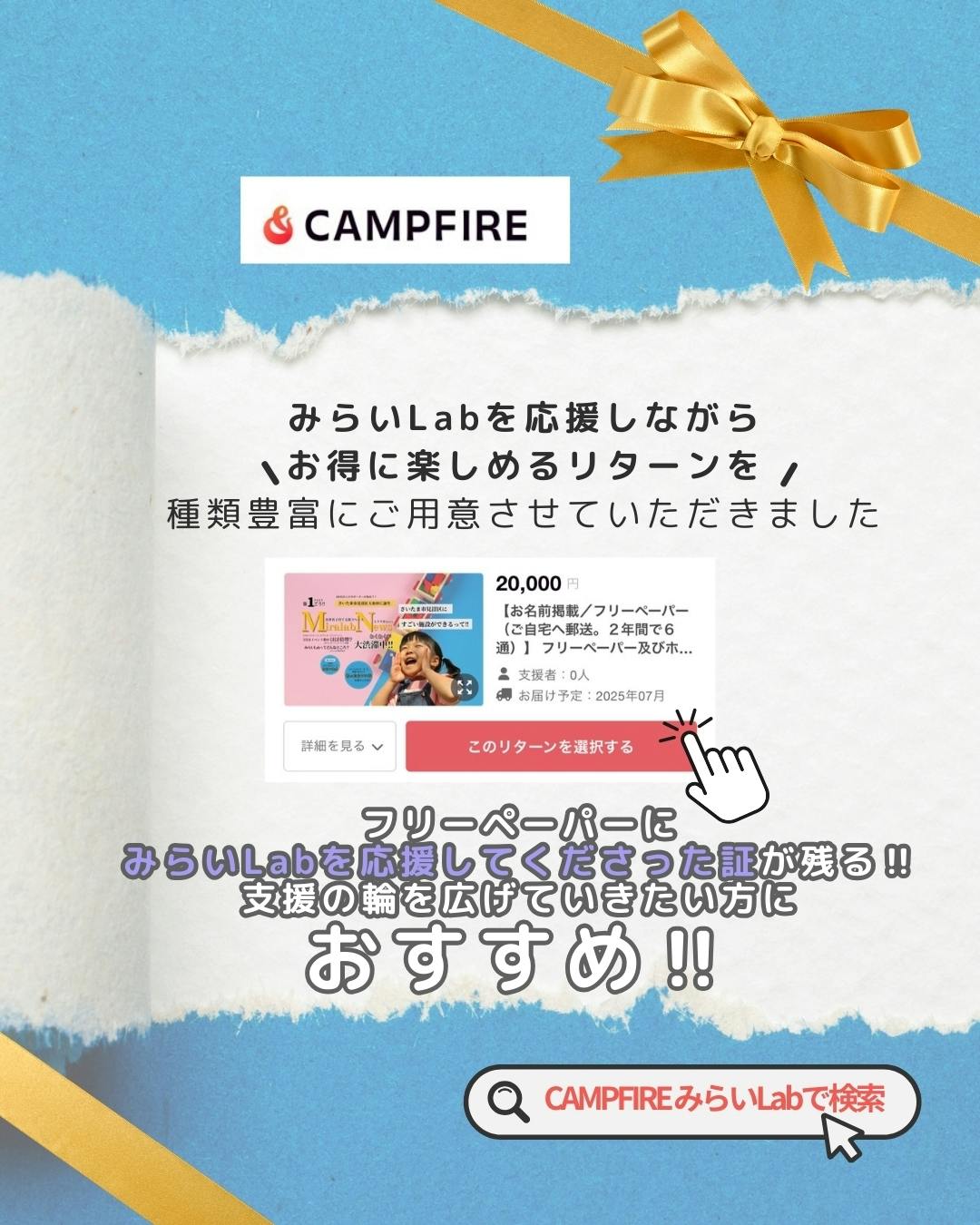 * 『みらいLab』の良さをリアルにお楽しみいただけるリターン‼︎皆様のお越しを心よりお待ちしております。