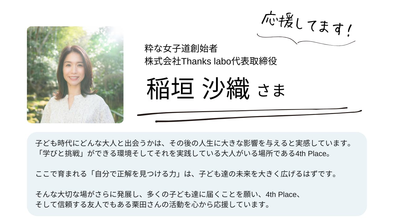 初めまして(社)4th Place 代表の栗田加奈子です。