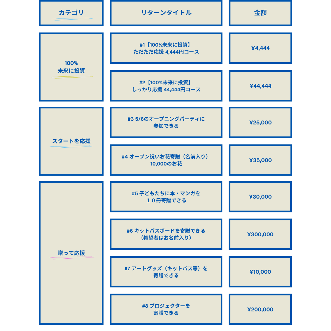 ※目標金額を超えた場合はプロジェクトの運営費に充てさせていただきます。