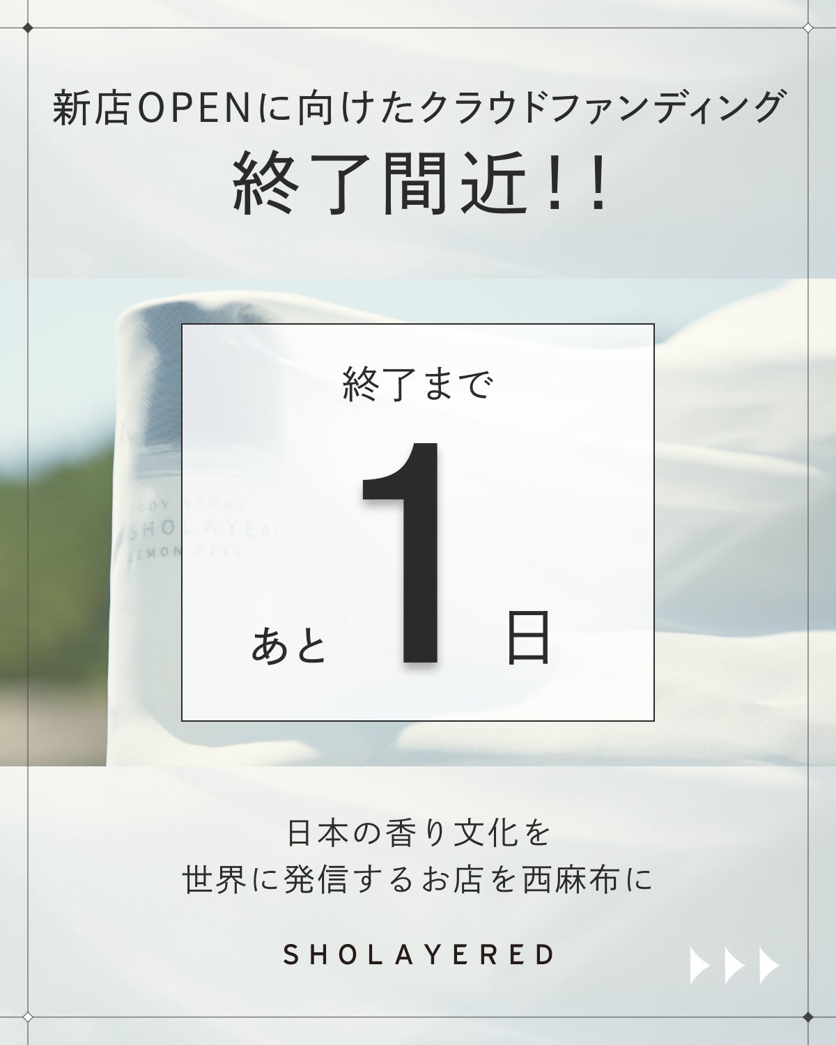 リターンは大人気の福袋コース、香水作成体験、限定フレグランス「西麻布1872」、CAMPFIRE限定のVIPオープニングパーティなど、すべてのリターンがSHOLAYEREDらしい感性に満ちた内容となっています。