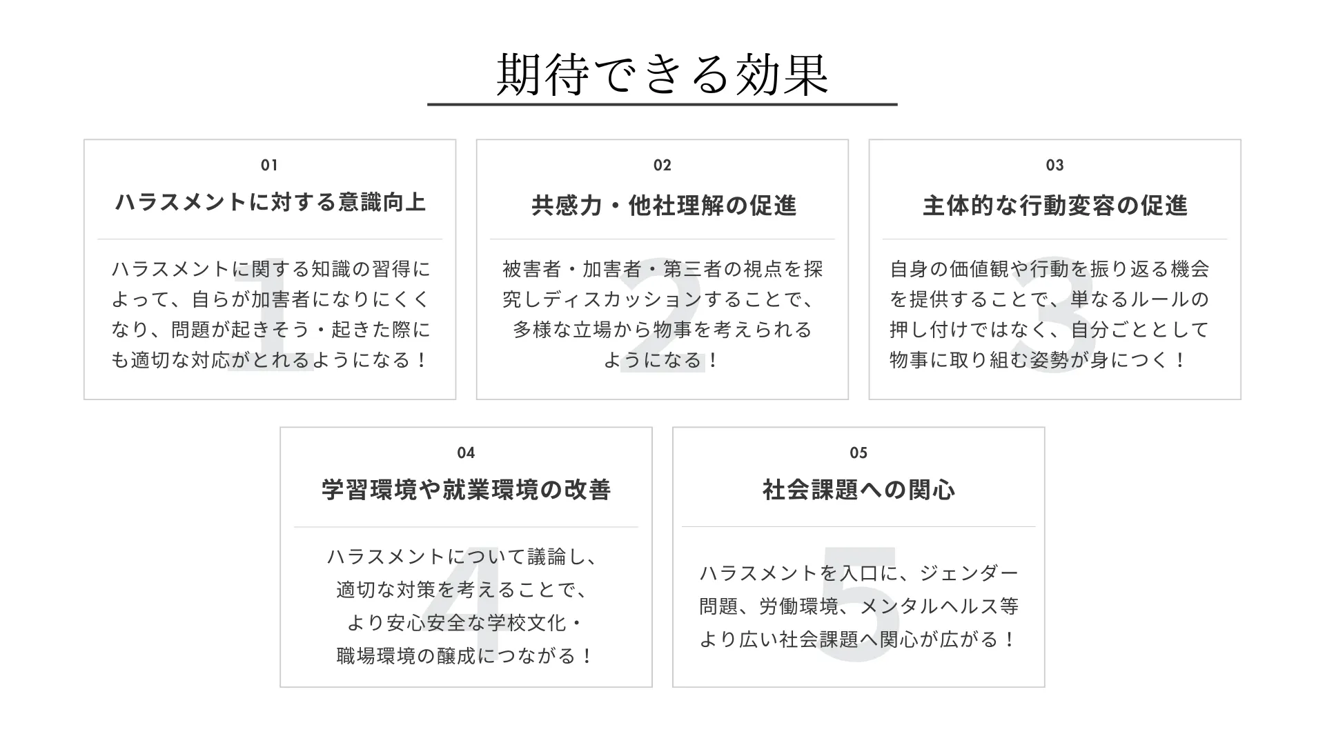 ・グループワークをはさむので、自分にはなかった視点からもハラスメントを見ることができます。