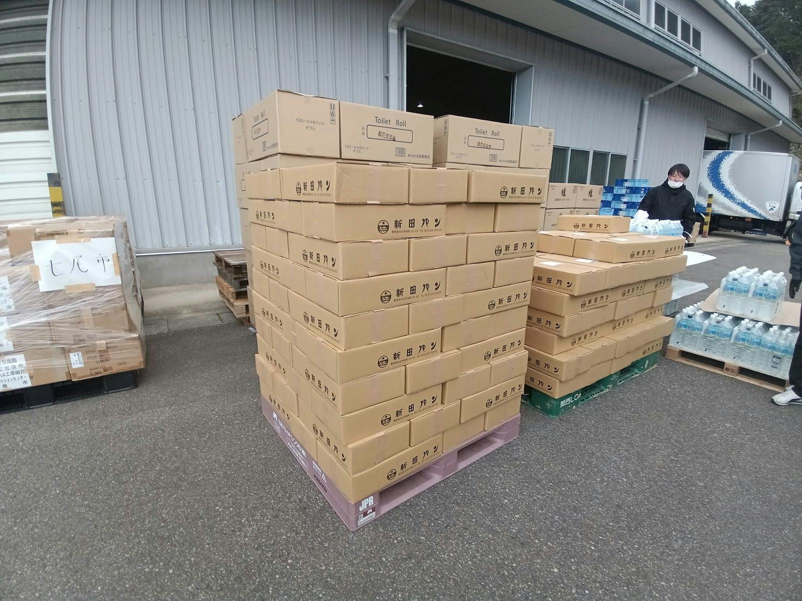 支援物資が大量に届くものの、どこに何があるのかわからない混乱状況。
