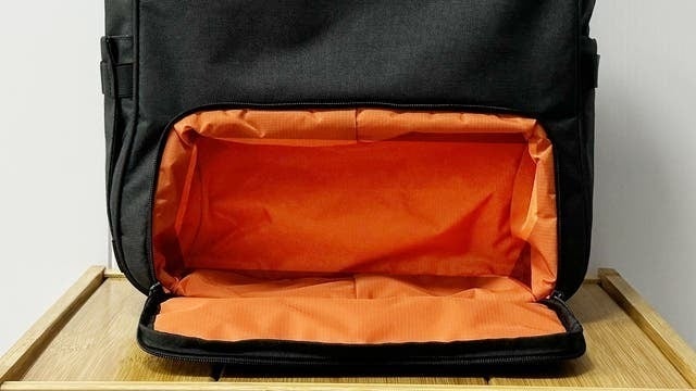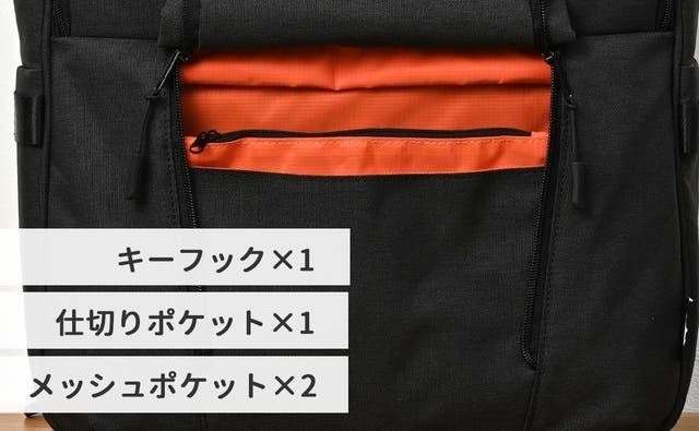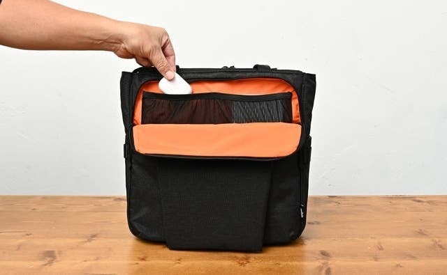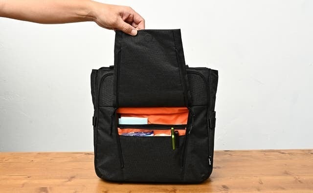ポケットは、「ガバッ」とカバのように大きく口が開くから入れやすくて取り出しやすいです。また中の仕切り板で、上部の荷物に押し潰されることはありません。