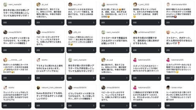 「ポケットがもっと欲しい」「シンプルな方がいい」そんな声の中でも、「トートバッグで仕分けができるのものが欲しい!」が多くありました。