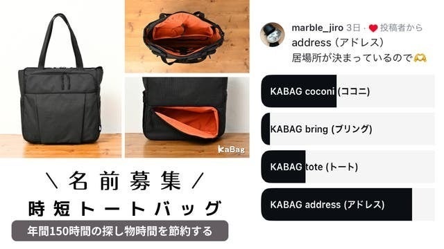 「KABAG address」は、探しものがすぐに見つかる「時短トート」。