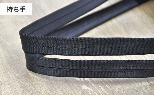 クタクタのトートバッグにポケットを増やしても、探しにくければ意味がありません。収納したモノを探しやすくするには、トートバッグがシュッと立ち上がっていて、ガバッと口が開いて、ポケットの中身の出し入れがスムーズでなければなりません。そこでパイピングを施し、しっかりと自立するボックス型にしました。