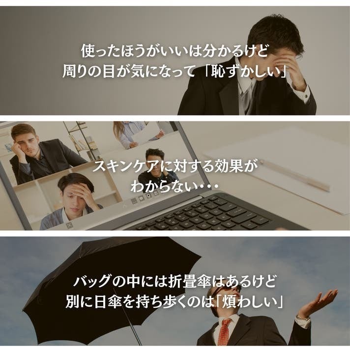 少しでも快適にしたい。でも、、、日傘を使うのは周りの目が気になって恥ずかしい。持ち歩くのが煩わしい。そう感じている方も多いのではないでしょうか?