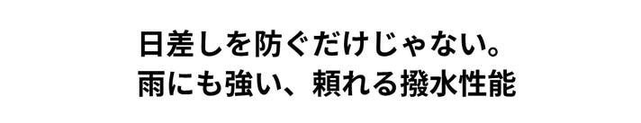 本製品は、日傘としてのUVカット・遮光性能に加え、しっかりとした撥水加工も施されています。突然の雨にも対応できる晴雨兼用傘です。