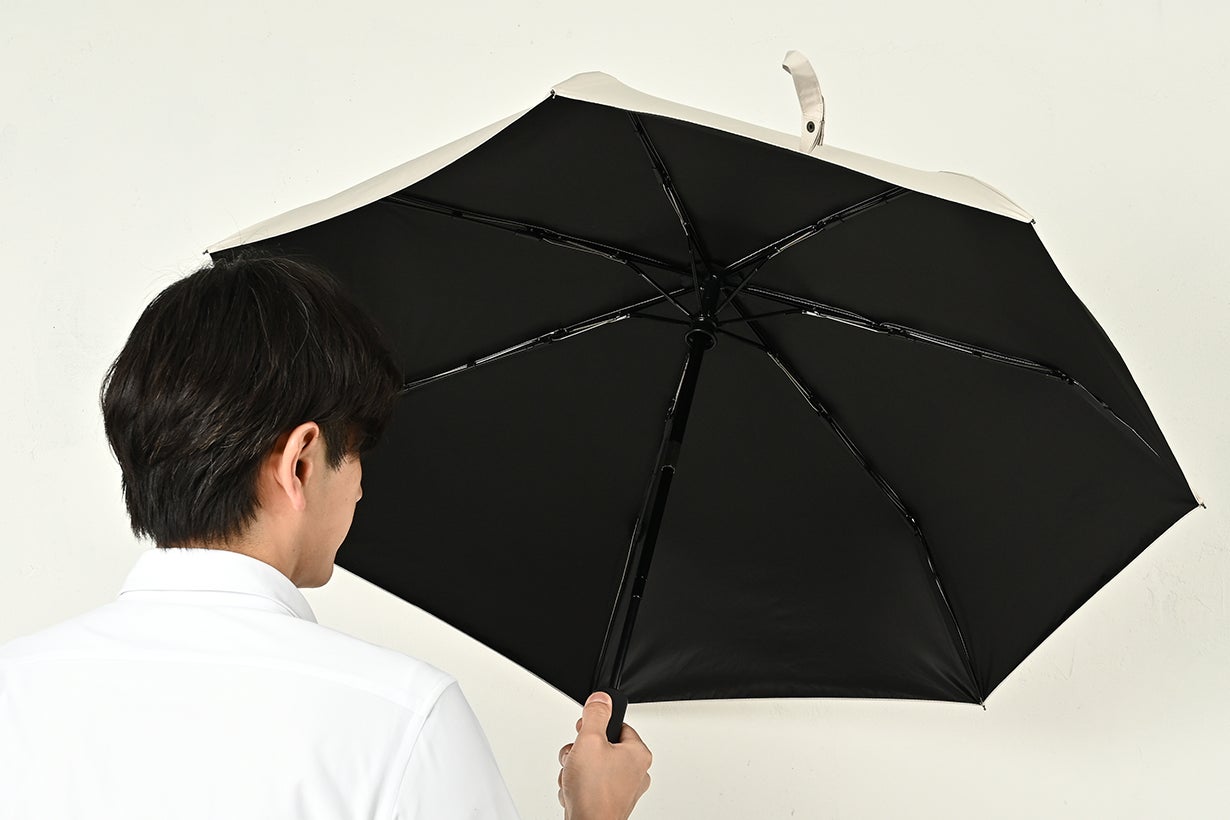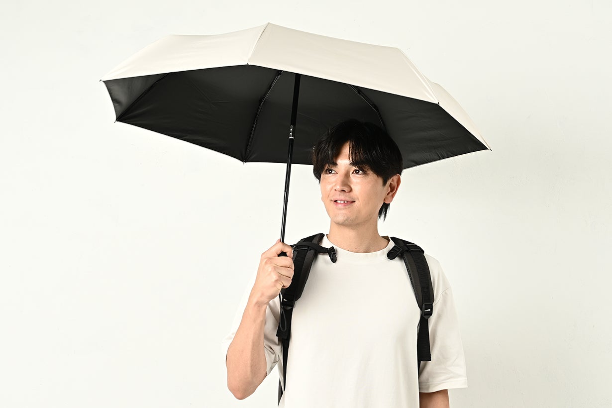 片手でスッと開けるワンタッチ開閉と、バッグに収まるスマートな収納サイズ。デザインも機能も妥協しない、“男性”のための1本です。