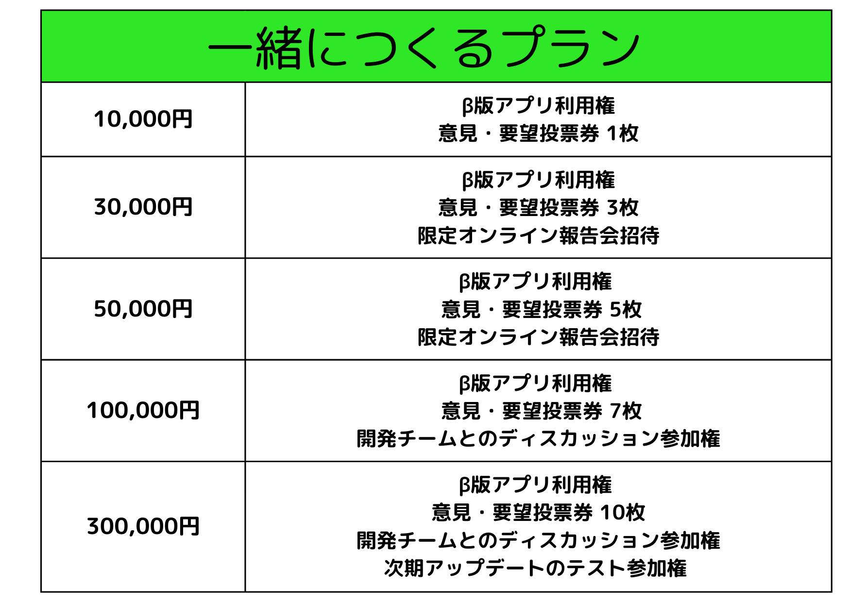 ✅ アプリの先行体験:支援者限定でβ版を利用でき、いち早くサービスを体験できる。