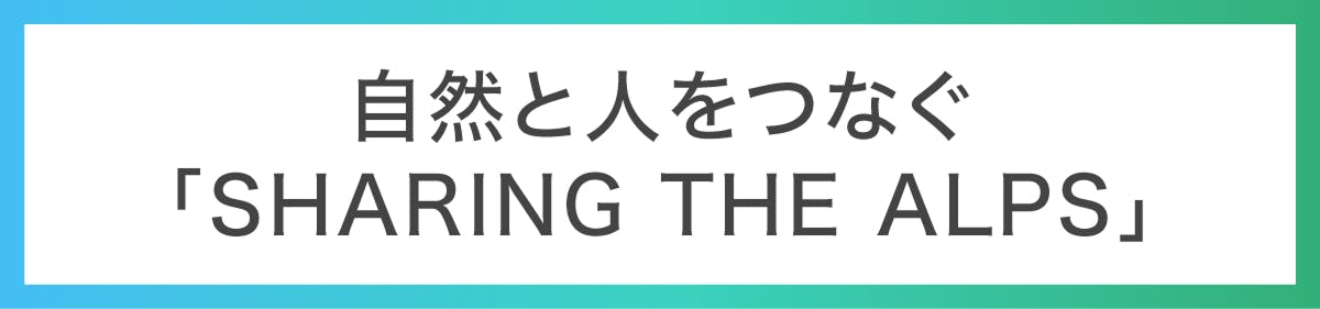 そのためにも、まずは多くの人に自然の魅力を知ってほしい。だからこそ、私たちの活動には、「SHARING THE ALPS」という想いが込められているのです。