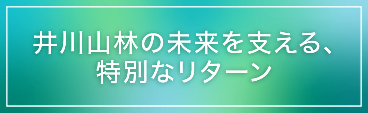 このプロジェクトでは、支援してくださる皆さんと井川山林をつなぐ、特別なリターンをご用意しました。単なる返礼品ではなく、森の価値を実感し、自然とのつながりを深められるものばかりです。