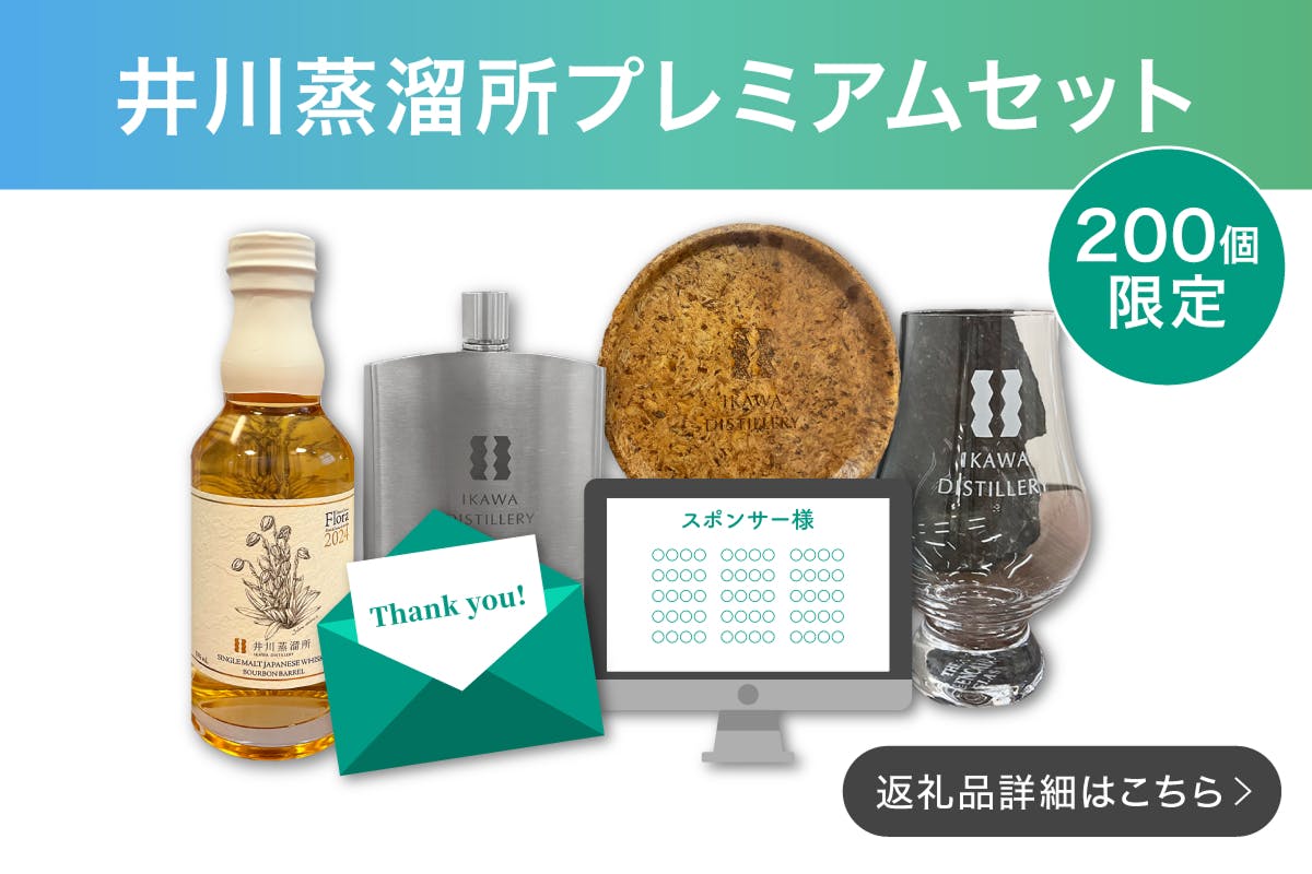 例えば、絶景スポットに名前を刻む特別な機会や、森の中での体験プログラムを通じて、自然との絆を深めることができます。さらに、ウイスキーのモルト袋や樽材を活用したオリジナルグッズや原酒、フレーバースティックといったリターン品も魅力のひとつ。森の恵みを生かした特別なアイテムを通じて、日常の中で井川の自然に触れることができます。