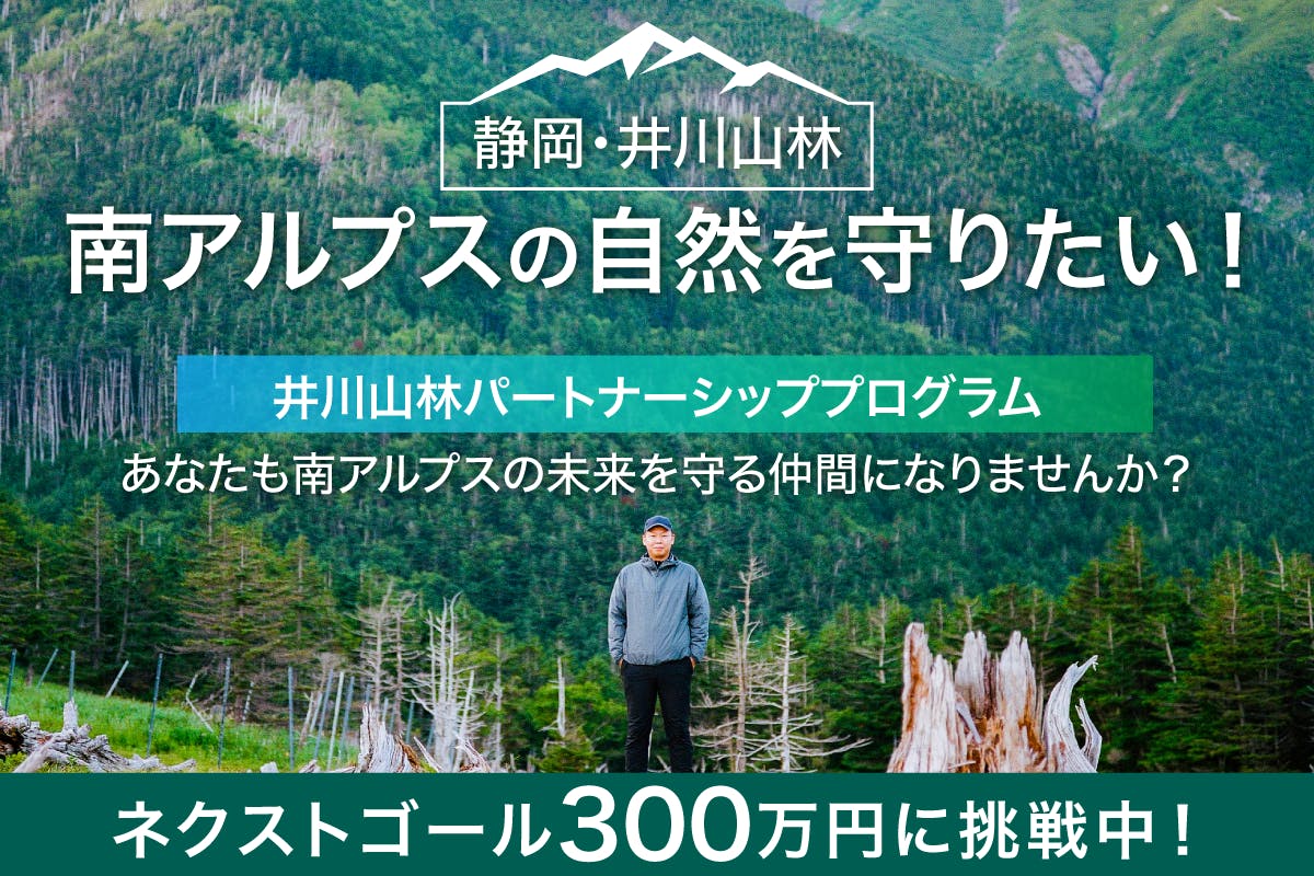 今回のクラウドファンディングでは、南アルプスの貴重な自然を未来へつなげるために、「井川山林パートナーシッププログラム」を立ち上げました。