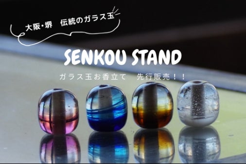 地元である大阪府堺市は、仁徳天皇陵古墳があり千利休や与謝野晶子の資料館などがあります。刃物や注染の染物、自転車、線香などが有名です。この中でお線香を使用する際にガラス玉を添えて使ってもらいたいという思いで、お香立て「SENKOU STAND」を販売したいと制作しました。他にもアクセサリーや雑貨の販売も予定しています。