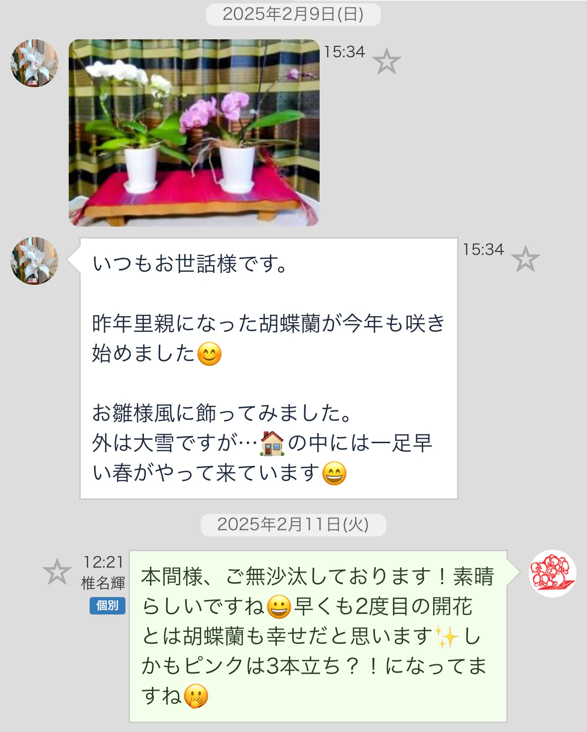 2025/05/29 12:00支援者の皆様。この度は里親胡蝶蘭セカンドシーズンへのご賛同、ご支援を賜り誠にありがとうございました!お陰様で多くの胡蝶蘭を見送ることができ、目標も達成できました事、心より感謝申し上げます。既に開花している支援者様より多くの開花写真をいただき、里親胡蝶蘭がみな元気そうに開花していて安心致しました。胡蝶蘭は幼苗から4年という長い年月をかけて、やっとの思いで開花し出荷される植物です。そしてその後はもっと長い胡蝶蘭としての人生を全うする訳ですが、胡蝶蘭の寿命は未だ正確には計られていません。20年以上開花させているお客様がいらっしゃるほど長寿の植物であり、私共生産者の願いとしては、一日でも多く支援者様の日常に寄り添い、毎日を明るく彩り、元気を与えてくれる存在になってくれたら生産者冥利に尽きます。今後とも無期限で育て方サポートをしてまいりますので、いつでも育て方のご相談を頂ければと思います。どうぞ末永いお付き合いを宜しくお願い致します。また頂いた支援金につきましては、弊社での運営費、今年の秋から開催される千葉県、東京都、三重県、神奈川県での花育活動にありがたく使用させて頂きます。最後に。昨今のAIの進化は凄まじく、テクノロジーの発展が目まぐるしい時代でございますが、花は100年後も不変であり、また花を愛でるココロも人だけが持つ特別な感情だと思います。今後も花のある生活、花のある社会、花を咲かせる喜びを多くのお客様にお届けできよう、椎名洋ラン園一同、力を合わせて胡蝶蘭を咲かせ続けたいと思います。この度は多大なご支援を賜り誠にありがとうございました。弊社を代表し、皆様に心より御礼を申し上げます。椎名輝 もっと見る