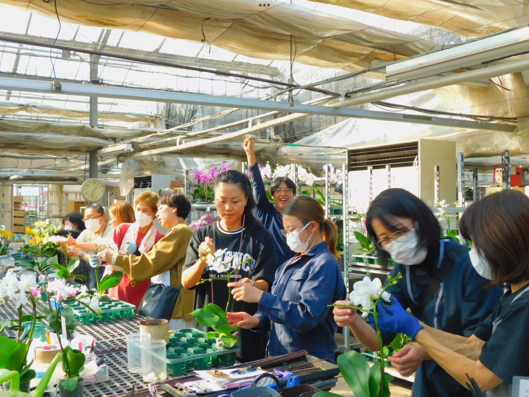 創業時は2人でのスタートでしたが、今では働いてくれている従業員も100名に増え、毎日楽しく胡蝶蘭栽培をしています。