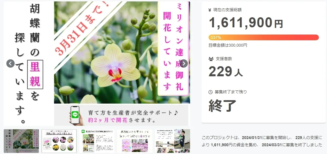 【速報と御礼】クラウドファンディング「里親胡蝶蘭」、目標金額達成いたしました!心より感謝申し上げます!