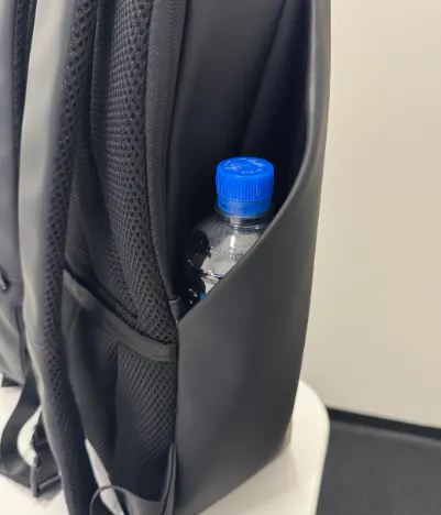 サイドの巻き込みデザインの部分にはペットボトルや折りたたみ傘の収納が可能です。