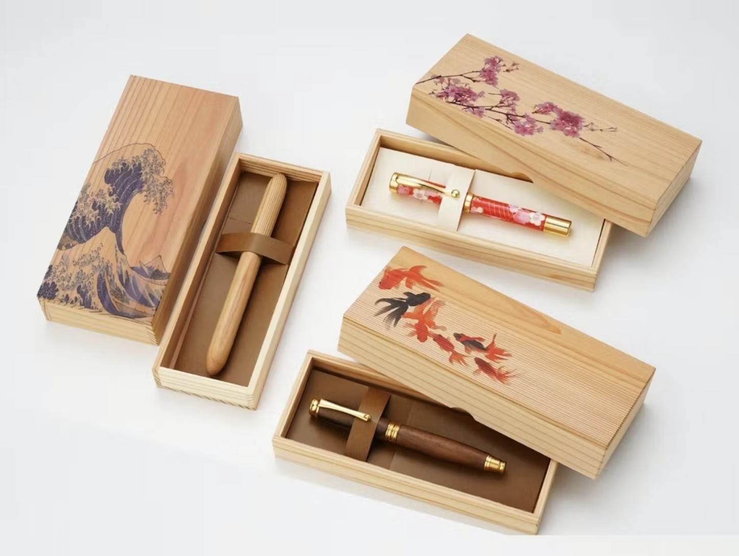 今回、贈答品にもおすすめな「長良すぎ」木箱ペンケースもご用意いたしました。特別な方へのプレゼントなどにも一緒にご利用ください。すぎの木は消臭殺菌効果に優れた日本の誇る木材です。