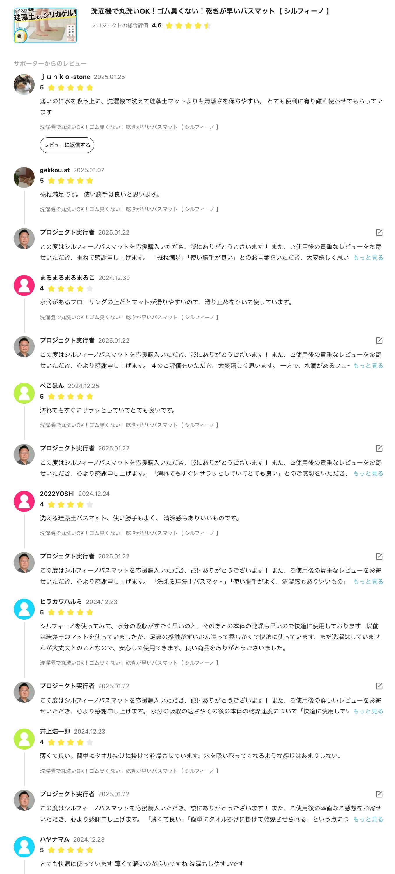 Makuakeでのプロジェクト後、実際に使用されたサポーターの皆様から4.6という高評価をいただいています。特に以下の点が好評です: