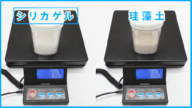 このシリカゲル、乾燥剤として使われているだけに珪藻土よりも調湿力が高いのです!