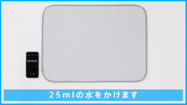 【 シルフィーノ 】は、25mlもの水をかけても独自の3層構造が水分を表面に戻しません。乾きやすく、ご家族で続けて使ってもサラサラ。毎回おろしたてのよう。もちろん裏側に染み出すこともないので、床を濡らすことはありません。