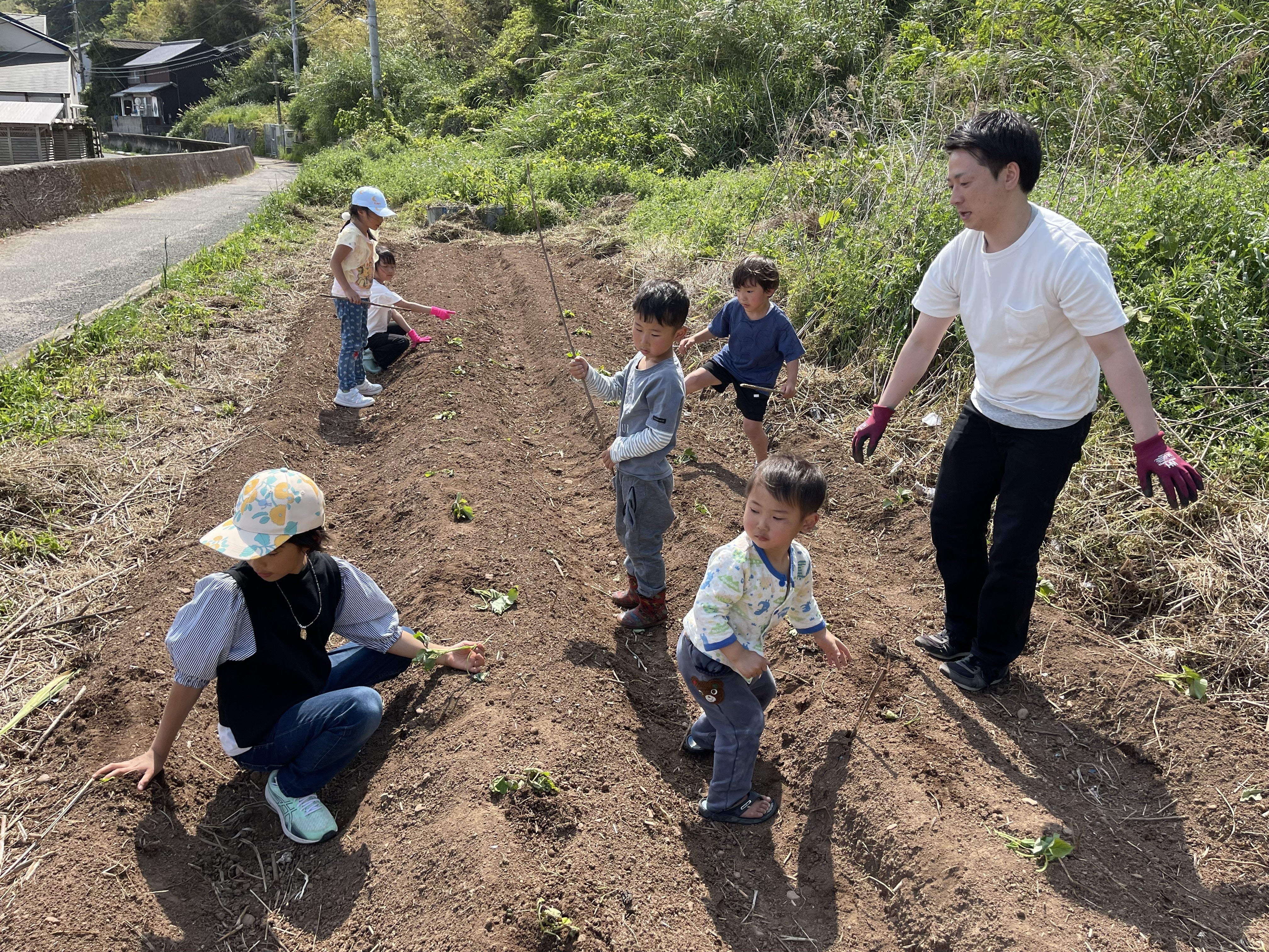 相島の子供達とさつま芋を植えました