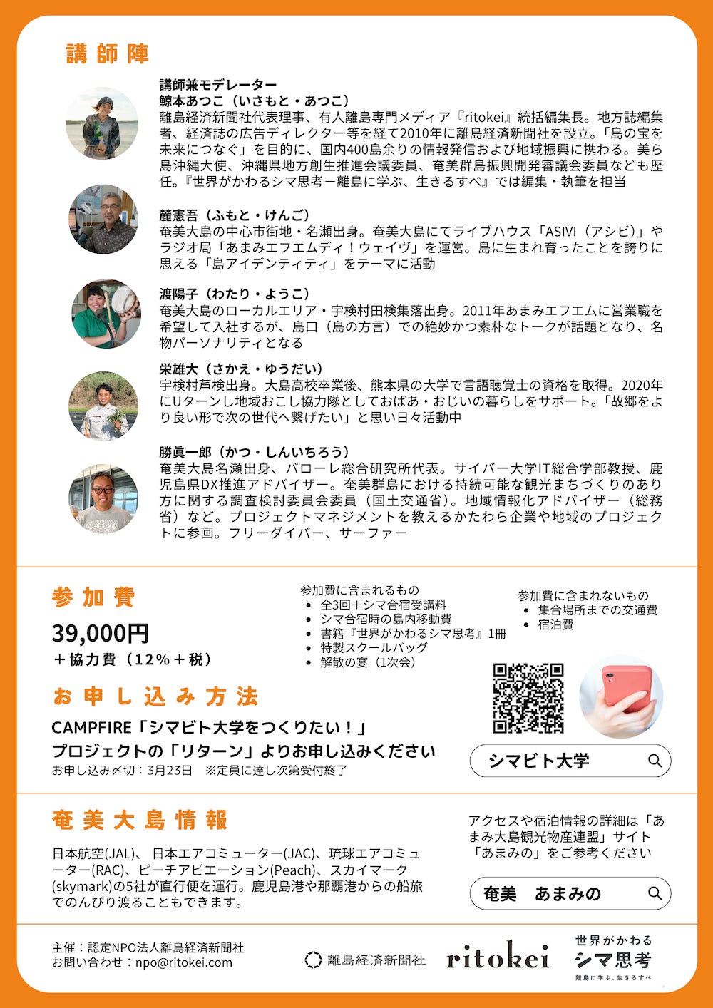 講師:鯨本あつこ×栄雄大(宇検村地域おこし協力隊)