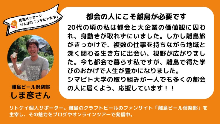 「都会の人にこそ離島が必要です」このメッセージにドキッとした方……あなたこそ、「シマビト大学」が求める仲間です。