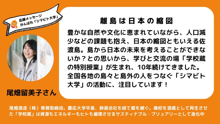 日本最大の島・佐渡島より、尾畑酒造・尾畑留美子さんの応援メッセージが届きました!