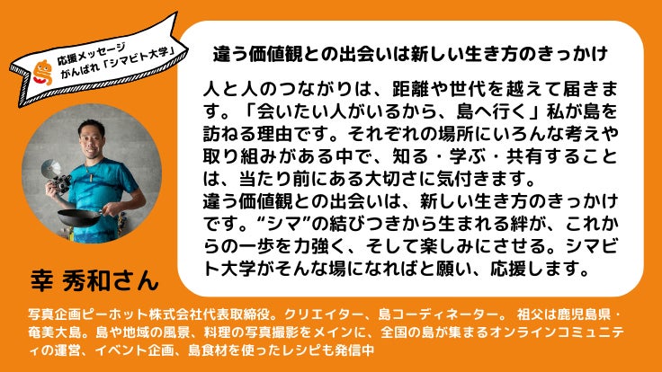 福岡県在住・島コーディネーターとして活躍する幸秀和さんより応援コメントをいただきました!