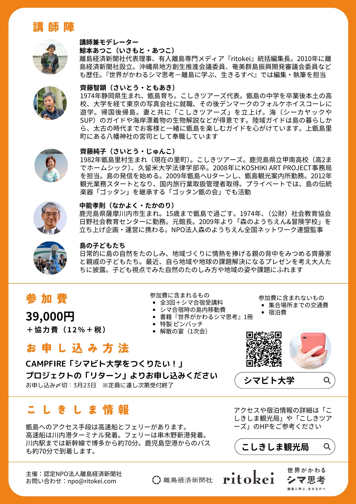 講師:鯨本あつこ×島のこどもたち×齊藤純子(こしきツアーズ)