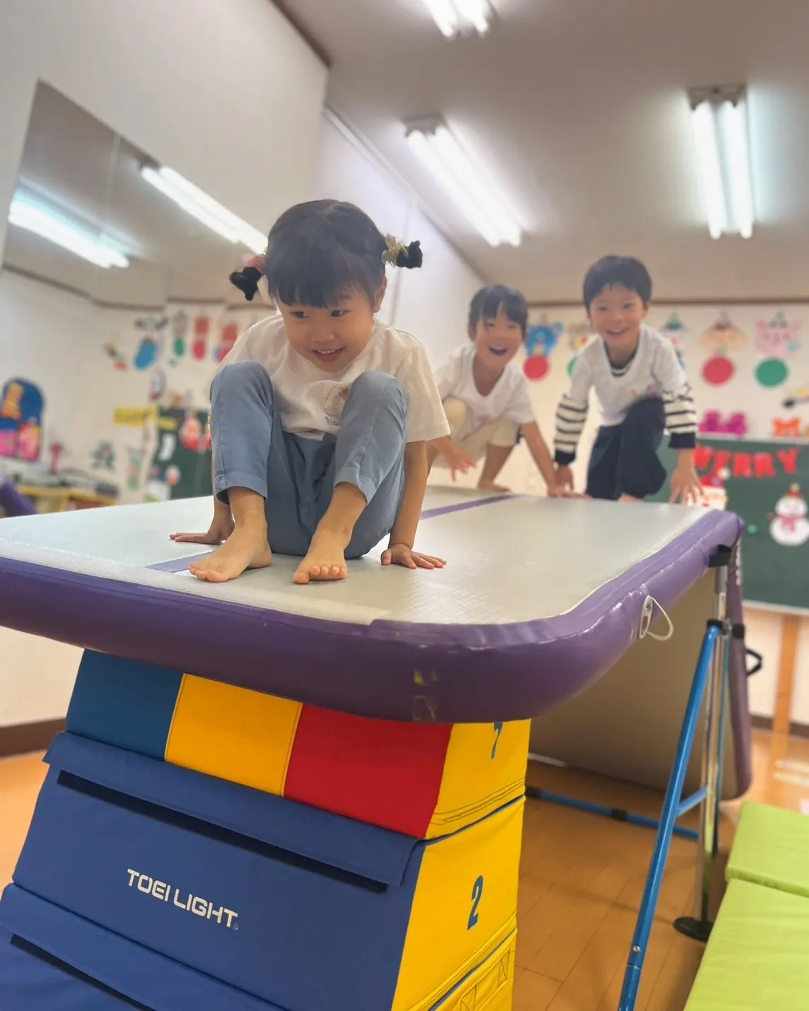 運動遊びをメインに活動しておりますが、もっと難易度の高い技への挑戦や子どもが自主的に練習ができる環境を整える為にも、安全性の高い用具の導入が必要です。