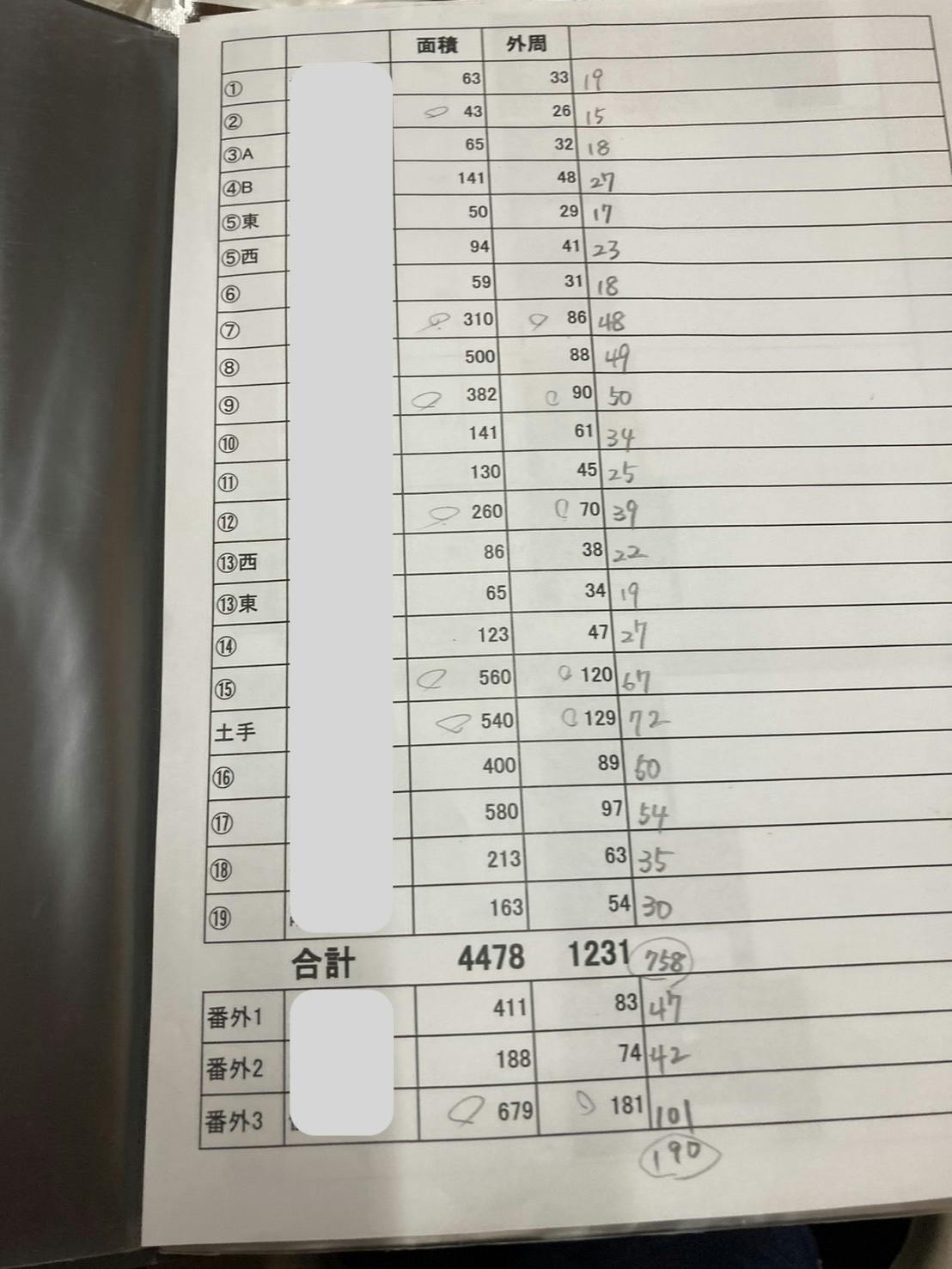現在、まるちゃんが管理している畑面積と現在設置金網柵の総枚数一番右が現在も設置されている金網柵の大まかな数です。