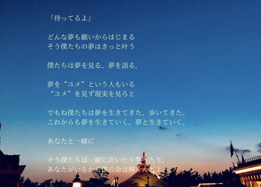 あなた(yu)がいたから僕(me)になったと、またそれがこの世界をつくっていくと…あなたやたくさんの愛する人に伝えたい。