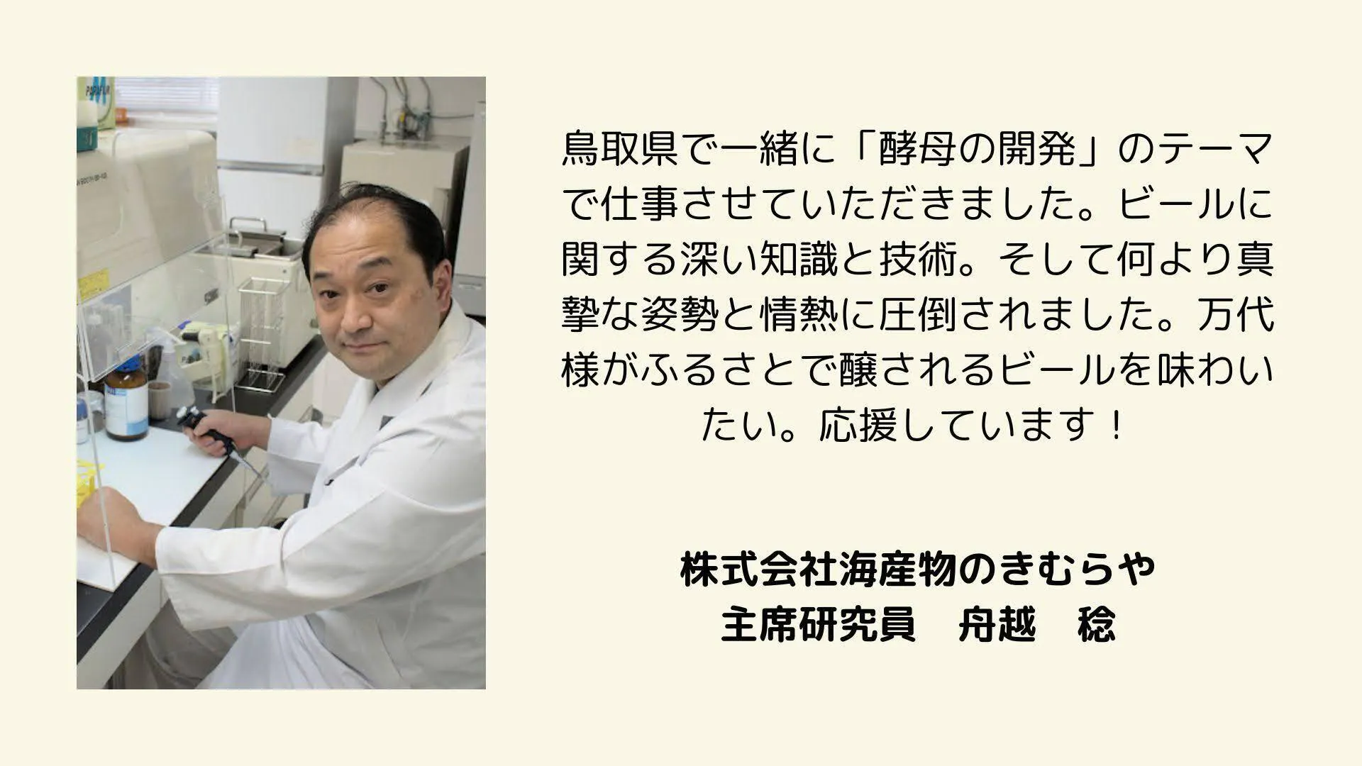 商社に勤めていましたが2021年コロナを機に人生に悩み退職、キャンピングカーで日本一周の旅にでました。各地を巡りながら自分をじっくり見つめ直す中で、大好きなクラフトビールを仕事にしたい思いを確認し、2021年に福岡市のクラフトビール醸造所に転職。日々をクラフトビールの製造と販売に費やし、現在は縁あって鳥取県のブルワリーで醸造長をしています。岡山県和気町出身。好きなブルワリーはBALE BREAKER。