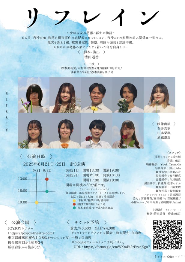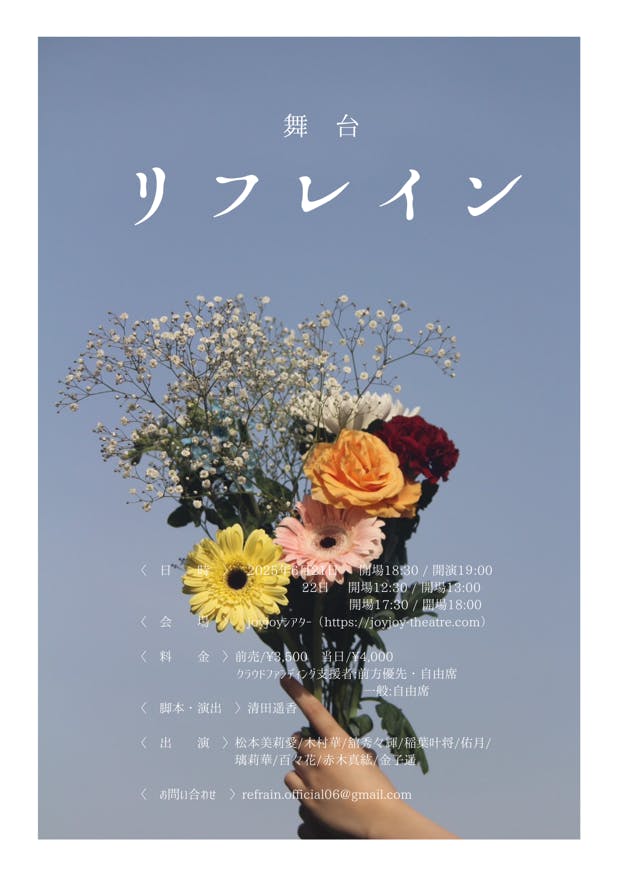 日々たくさんのご閲覧・ご支援、誠にありがとうございます。舞台「リフレイン」広報の後上です。