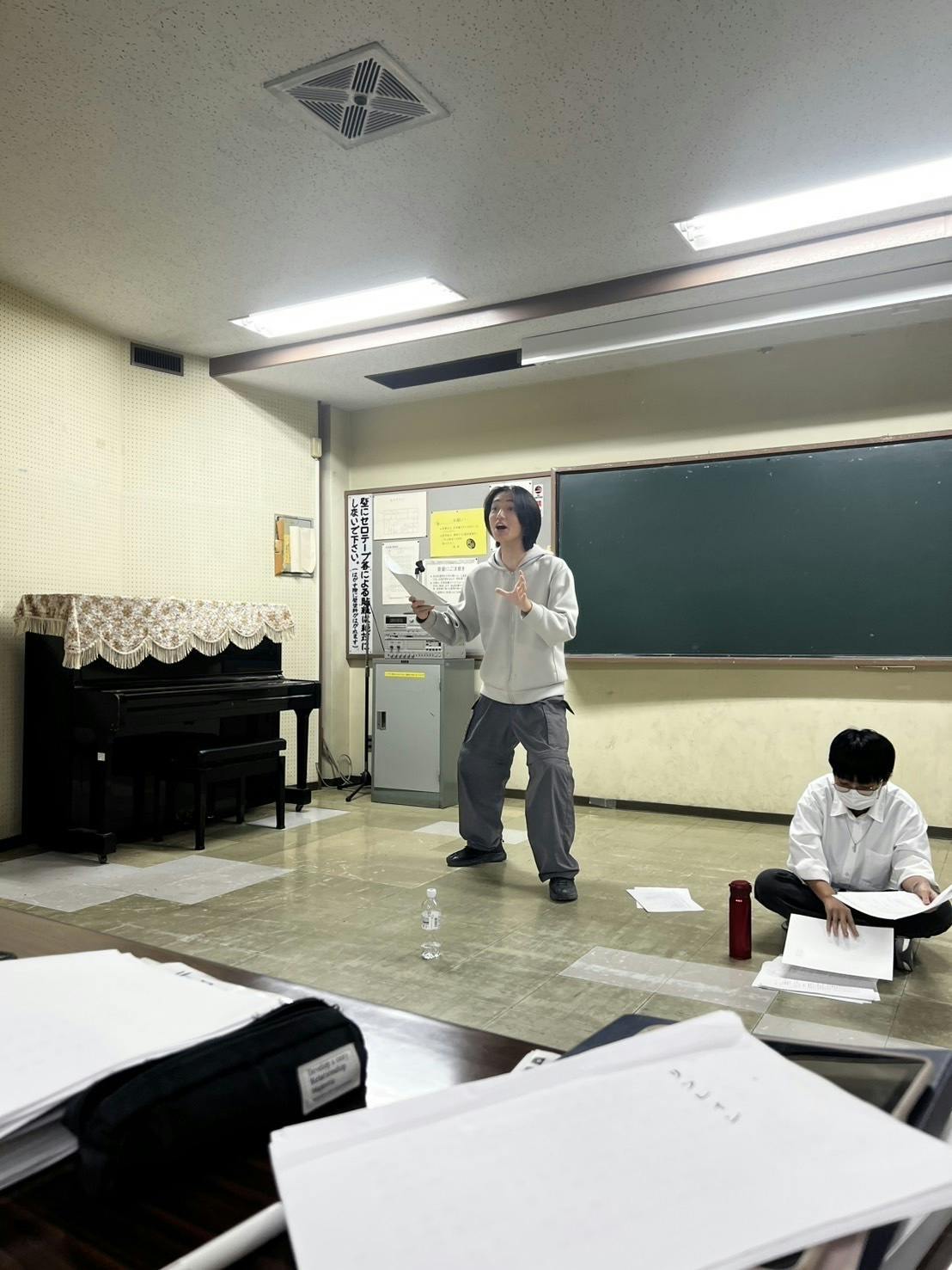 お芝居をするうえで大切な「発声」と向き合う練習を行いました。感情を込めず、大きい声でセリフを読むことで、恥を捨て、自分が持っているエネルギーで遠くにいる相手に言葉を届ける方法を身につけました。