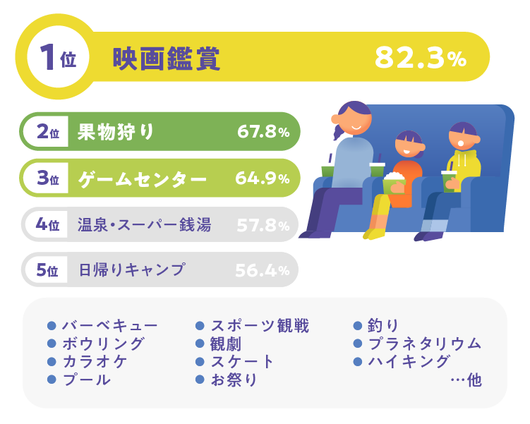 また、『日帰りでできる体験のニーズ』として最も求められているのが映画館での映画鑑賞であることも調査を通してわかりました。
