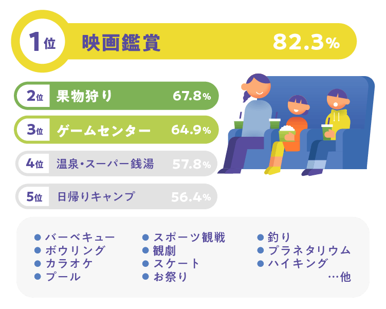 また、『日帰りでできる体験のニーズ』として最も求められているのが映画館での映画鑑賞であることも調査を通してわかりました。