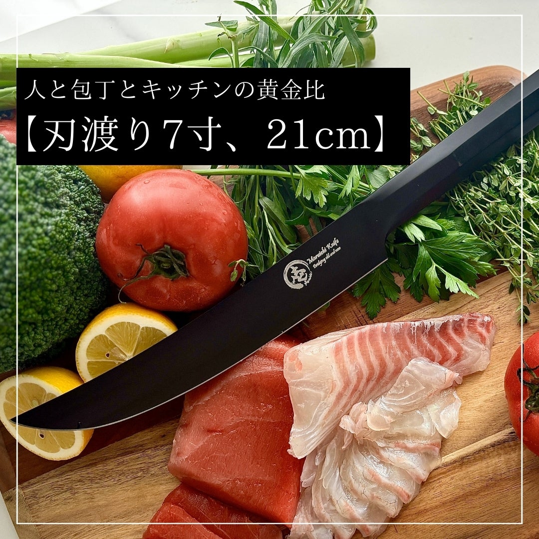 21cmの刃渡りは、日本の食材と包丁の構え方を徹底的に研究して導き出された長さ。