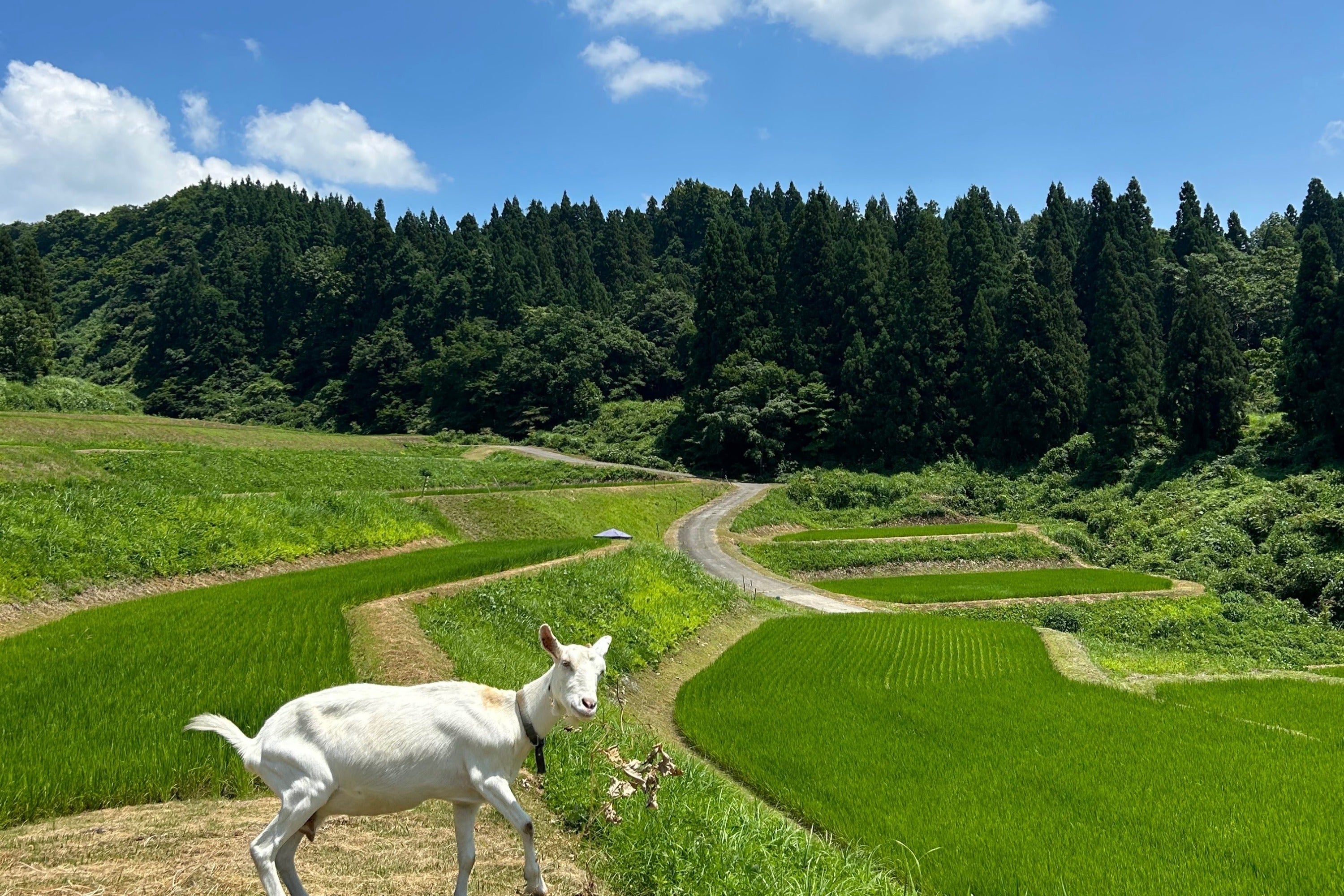 「はじめまして」と挨拶を交わし、車のドアが閉まり、私たちは国道17号線を離れて、山道をどんどんと登り始めました。道の先には家ひとつ見当たらず、山の中を進む車の中で、だんだんと不安が広がっていきました。トンネルを一つ、二つ抜け、峠を越えたその先には、胸の中の不安が嘘のように山と田んぼに囲まれた三ヶ村が静かに広がっていました。